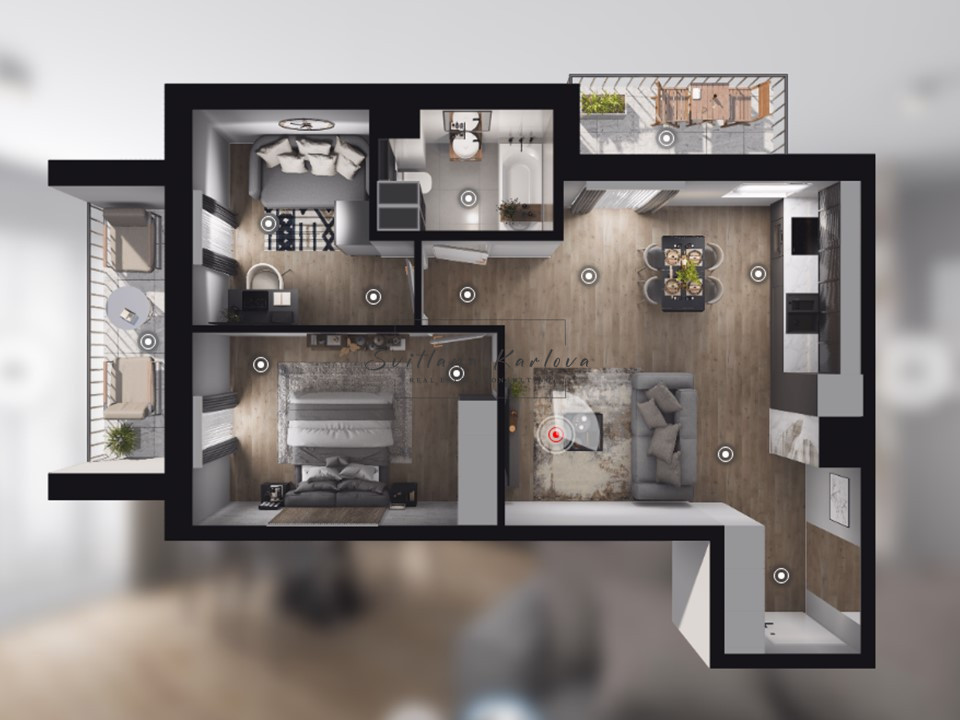 Mieszkanie w stanie deweloperskim co daje możliwość komfortowej aranżacji we wlasnym zakrecie (цizualizacja przedstawia możliwe wykończenia).