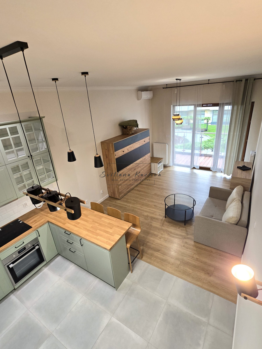Oferuję do wynajmu mieszkanie dwupokojowe o powierzchni 52 m2, zlokalizowanego na 1 piętrze nowego apartamentowca zbudowanego w 2022 roku. Mieszkanie posiada przepiękny widok na zielony dziedziniec osiedla.