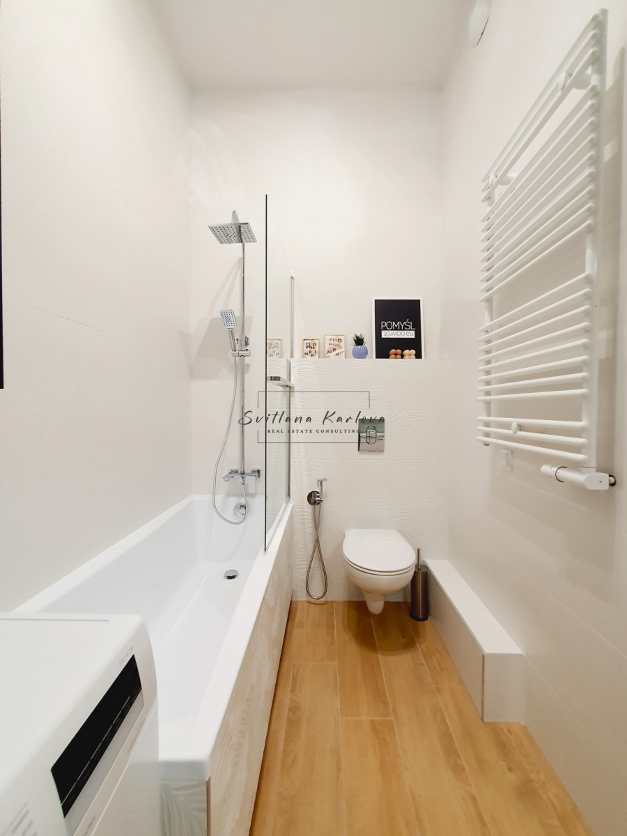 • łazienka z wanną i pralko-suszarką;